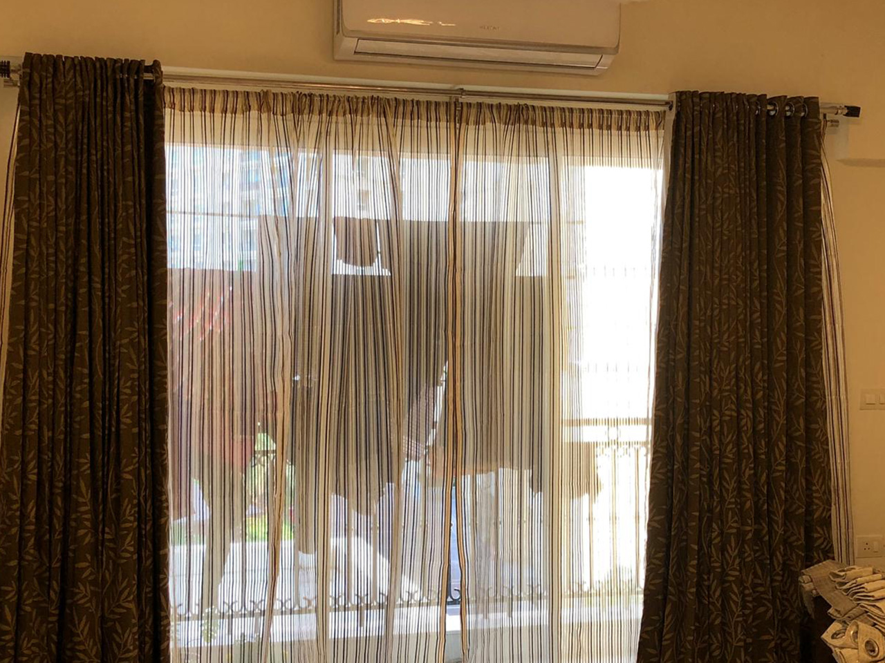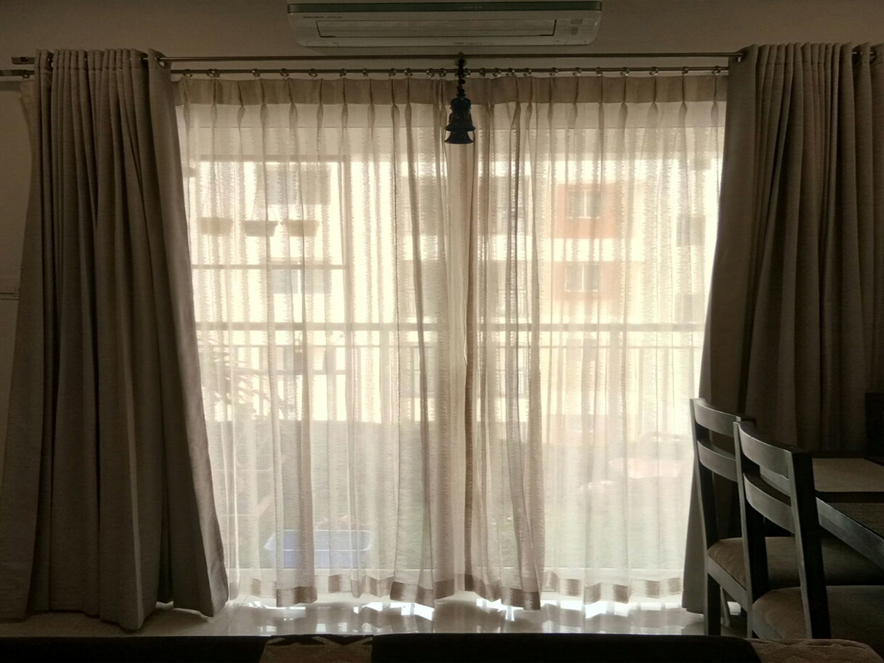 Curtains are categorized into day and night curtains. Day curtains are lightweight and sheer in fabric as compared to night curtains. The main purpose of a day curtain is to allow natural sunlight to shine through, but yet preserving privacy control during the day. Day curtains comes in materials such as nylon net, khadi cotton, organza or lace. Sheers work extremely well as a wall-to- wall décor creating a continuous backdrop that anchors a room by enhancing the look of the interiors. They provide the subtle ambient light that during the day time, and reduce the glare and intensity of direct sunlight by diffusing it from entering the room. They are not advised for privacy, and therefore they are usually matched with night curtains.